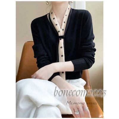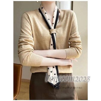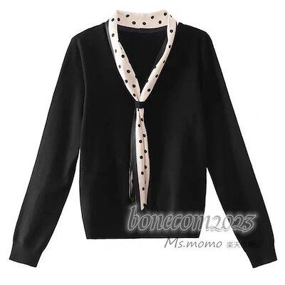 ニットトップス レディース 秋冬30代長袖セーター ドット柄リボン Vネック 丈セーター ゆったりプルオーバー オシャレ韓国風 大人ニットインナー