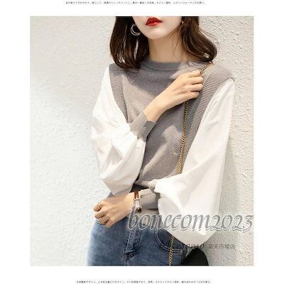 ニットトップス レディース 秋冬30代長袖セーター スリーブ 切り替え 丈セーター ゆったりプルオーバー オシャレ韓国風 大人ニットインナー