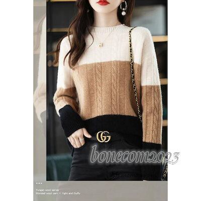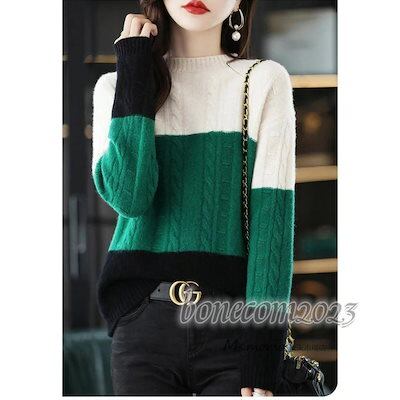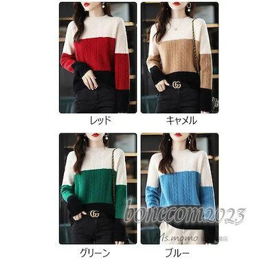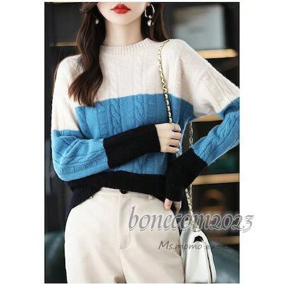ニットトップス レディース 秋冬30代長袖セーター ボーダー柄 配色 丈セーター ゆったりプルオーバー オシャレ韓国風 大人ニットインナー