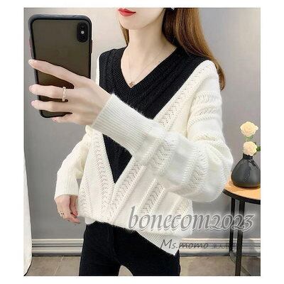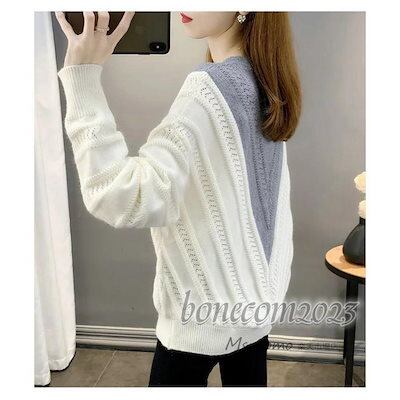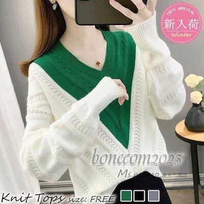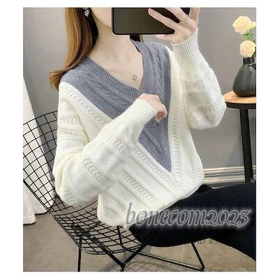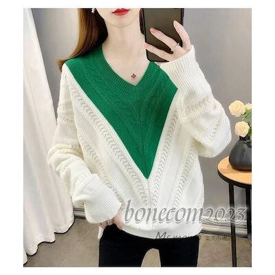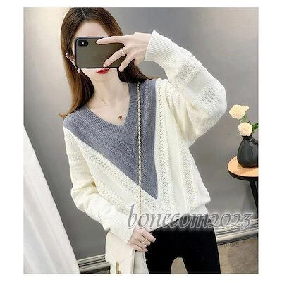 ニットトップス レディース 秋冬30代長袖セーター 無地Vネック 丈セーター ゆったりプルオーバー オシャレ韓国風 大人ニットインナー 厚手