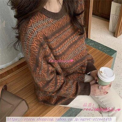 ニットトップス レディース 秋冬 40代 長袖 ニットトップス オシャレ大人 50代 ゆったりプルオーバー 30代 幾何柄セーター 韓国風 丈ニットインナー