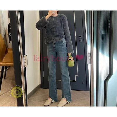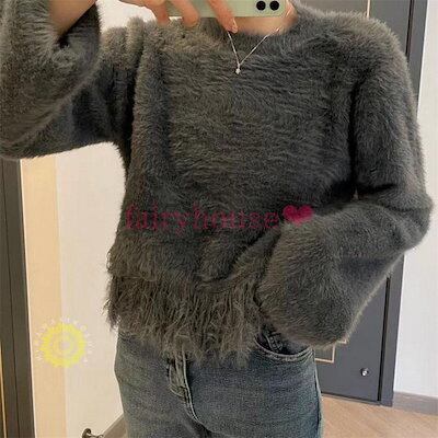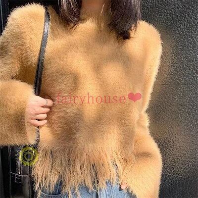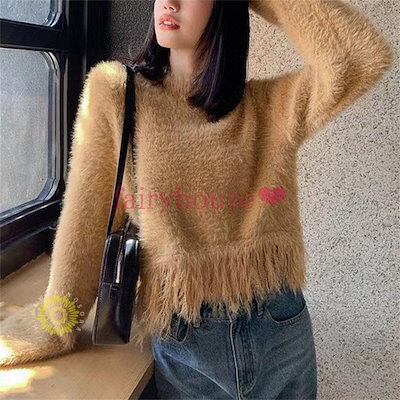 ニットトップスレディース 秋冬 40代 長袖セーター 丈セーター 厚手 フリンジ裾 ゆったりプルオーバー オシャレ韓国風 大人ニットインナー30代50代