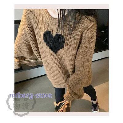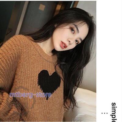 ニットセーター レディース 秋冬 40代 トップス 長袖 厚手 ニットソー ハート柄 韓国風 ショート丈 ニットトップス ゆったり セーター 大人可愛い 韓国風 通勤