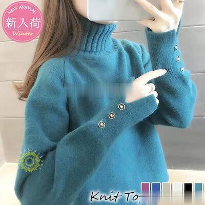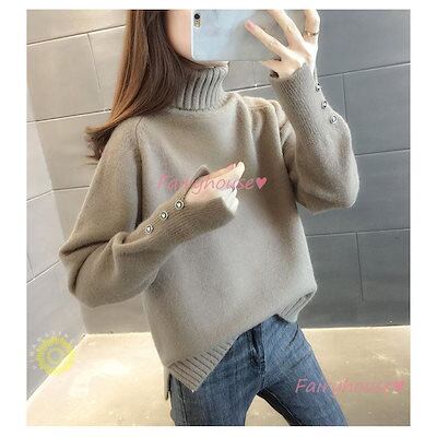 ニットトップス レディース 秋冬 40代 長袖セーター 無地ハイネック 丈セーター ゆったりプルオーバー オシャレ韓国風 大人ニットインナー 厚手 50代