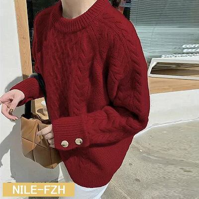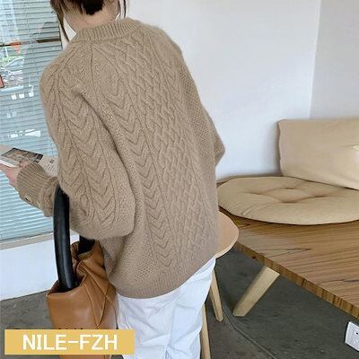 ケーブル編みニットトップスレディース韓国 トップス プルオーバー 厚手 無地 ゆったり カジュアル 着痩せ 秋冬