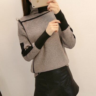 ニットセーター レディース 40代 秋冬 長袖 ニットソー 配色 ハイネック 韓国風 ニットセーター トップス タートルネック 通勤 ニットソー 上品 2色