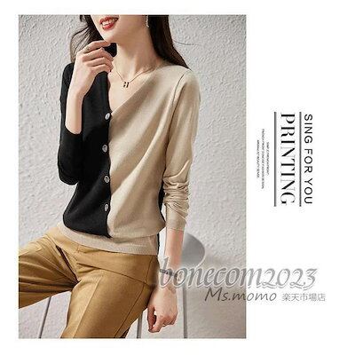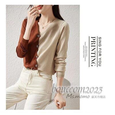 ニットトップス レディース 秋冬30代長袖セーター 配色Vネック 丈セーター ゆったりプルオーバー オシャレ韓国風 大人ニットインナー