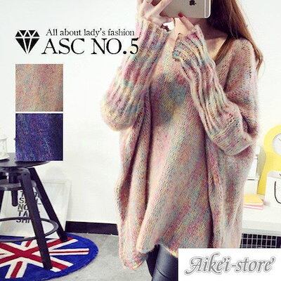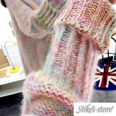 トップス ニット セーター レディース トレンド 冬 長袖 ゆったり ゆるふわ オーバーサイズ ミックスカラー 韓国 ピンク パープル かわいい
