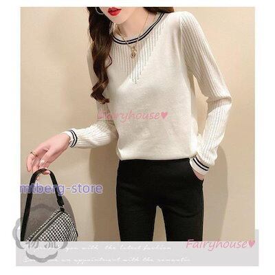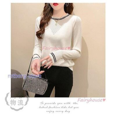 ニットトップス レディース 秋冬 40代 長袖 ニットトップス 白セーター ボーダー柄 ショット丈ニットソー ニットインナー 薄手 大人 オシャレ秋服 韓国風50代