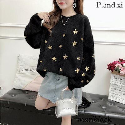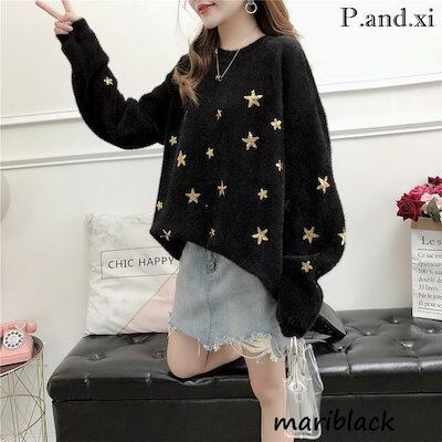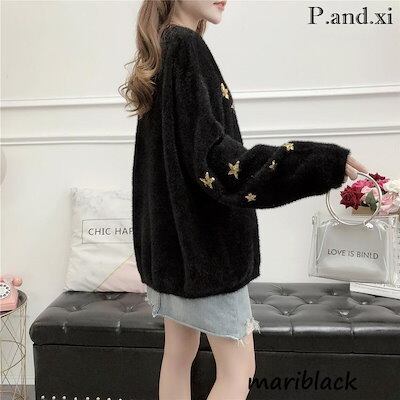 ニットトップス レディース 秋冬 40代 長袖セーター 星柄ニットセーター ニットソー もこもこ ゆったり 韓国風 オシャレニット 大人可愛い 30代
