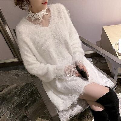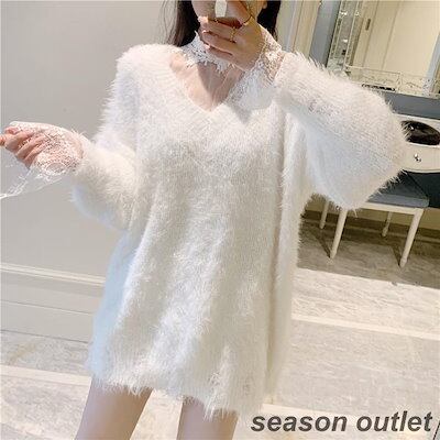 ニットセーター レディース 秋冬 トップス 40代 長袖 ニットソー+レースブラウス 韓国風 オシャレ トップス vネックセーター ゆったり 通勤 着痩せ