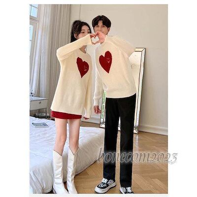 セーター ハート柄 ペアルック ペア 長袖 カップル ニット トップス 春秋冬 レディース メンズ お揃い カジュアル オシャレ 韓国風 バレンタイン プレゼント