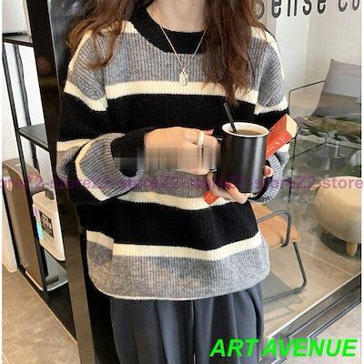 ニットトップス レディース 秋冬 40代 長袖 ニットトップス ボーダー柄セーター ショット丈ニットソー ゆったりプルオーバー 韓国風 オシャレ秋服 50.代 30代