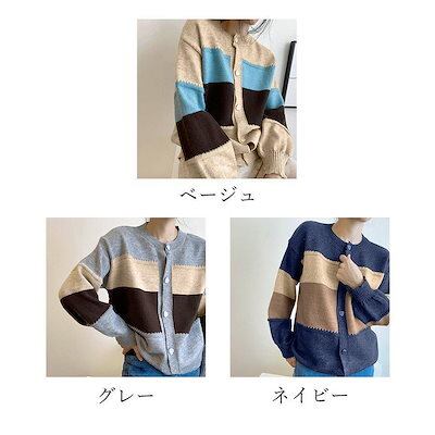 ニットセーター ニットカーディガン レディース 韓国風 ニット 配色 長袖 ゆったり おしゃれ トップス 通勤 着痩せ 大人 可愛い 秋 冬 着痩せ 上品 厚手