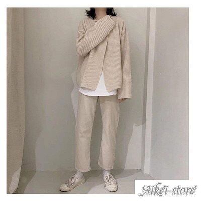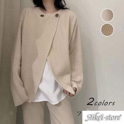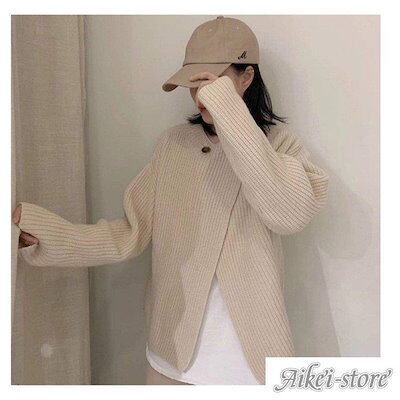 ニット レディース 秋冬 長袖 カーディガン ゆったり カットソー Vネック セーター 韓国風 セーター ベージュ カーキ おしゃれ 大きいサイズ 30代 40代 50代