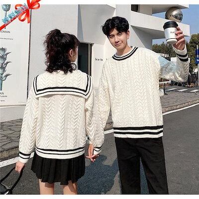ペアルック セーター メンズ レディース 学生 厚手 秋冬 韓国 丸首 レジャーセーター ニット カップル 通勤 トップス クルーネック 長袖