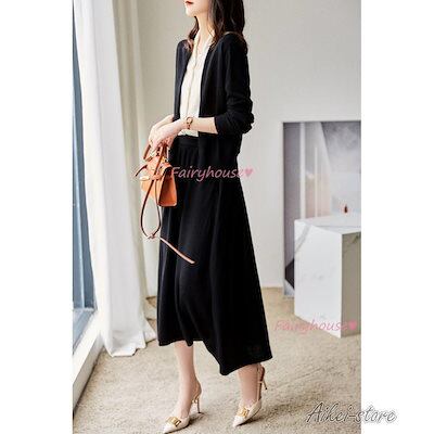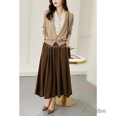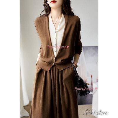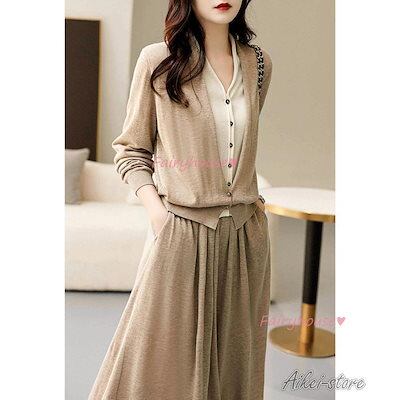ニットカーディガン レディース 秋冬 40代 長袖ニットコーディガン 配色Vネックカーディガン 丈セーター ゆったり秋服 おしゃれ 韓国風 50代