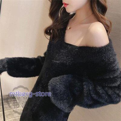 ニットセーター レディース 秋冬 長袖 パフスリーブ メリヤス トップス テンの毛 馬海毛 厚手 上品 着痩せ もこもこ ふわもこ30代 40代 50代ゆったり 韓国風