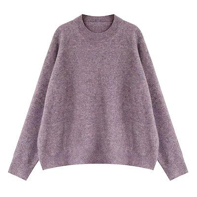 無地 ソフト 怠惰風 オーバーデザイン セーター レディース 秋冬 韓国 ラウンドネックニット ス