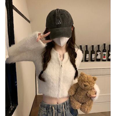 2024秋冬トップス 長袖 ニット セーター おしゃれ 色っぽ 女っぽスタンド丈カジュアルアップ きれいめ大人系ファッション加工フェミニン フレンチ