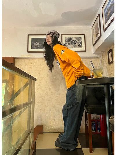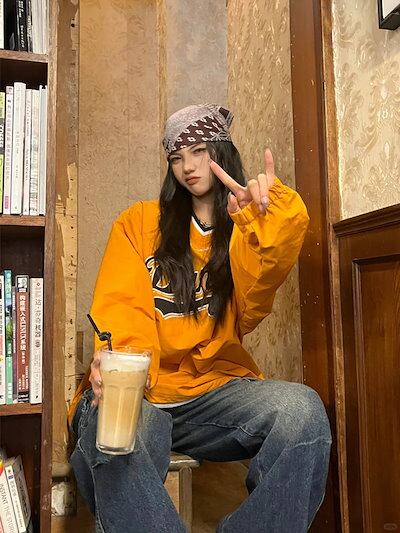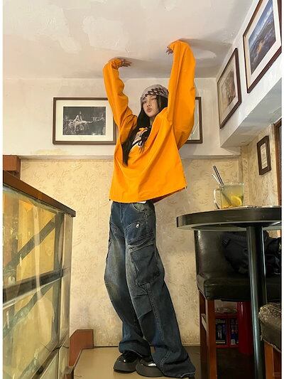 2024 秋冬 トップスバイカラー長袖TシャツかわいいK-POP黑白レディース韓国風ロゴ衣装ルーズゆったりカジュアルおしゃれサイズ袖シルエットファッション系サイドシャツフット春スポーツネックT