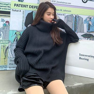 ブラウスハイネックセーターレディースミディアム丈厚手ゆったり外着秋冬新作けだるい風洋風白ボトムニットラブリータートルネックラウンドネックニットあったか!カシミヤタッチロンT ベーシックニット