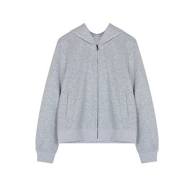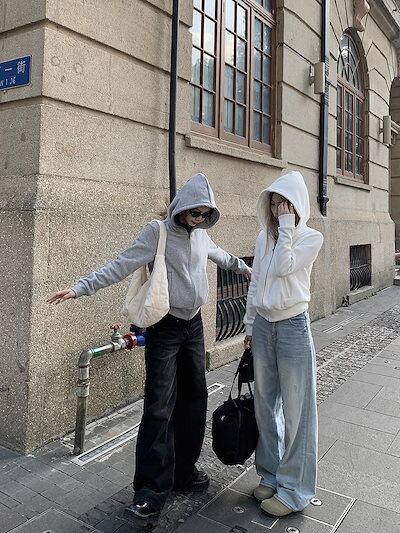 2024秋冬トップスかわいい2TYPE 厚手 裹起毛 パーカー フード付き韓国風長袖ゆったり白黒おしゃれレトロチャックシルエット韓国フルサイズファッション系ルーズレディースサイド学生通学トラック羽織り