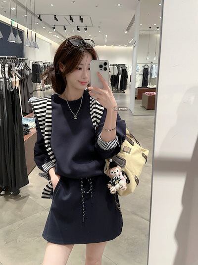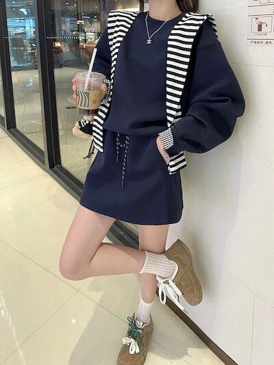 2024 秋冬 韓国 かわいい レディース 無地 普段使い長袖トップスレトロセットアップ黑白パーカーミニサイズ丈春カジュアルスポーツファッション系通学学生袖お出かけアップシルエットトラック羽織り