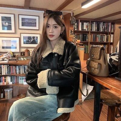人气新作ライダースジャケット裏起毛 冬アウター ゆったり ショート レザージャケット 韓国ファッション 流行りアウタートップス ジャンレディース 着痩せ 高級感コート裏起毛ファッションジャケット