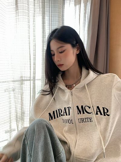 2024 秋冬トップスかわいいパーカーフード付き韓国風長袖ゆったり細見え白黒おしゃれレトロチャッシルエット甘め大人っぽ韓国フルサイズファッション系ルーズレディースサイド袖お出かけ学生通学トラック羽織り