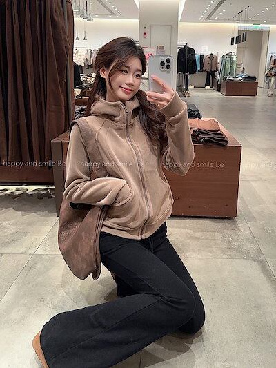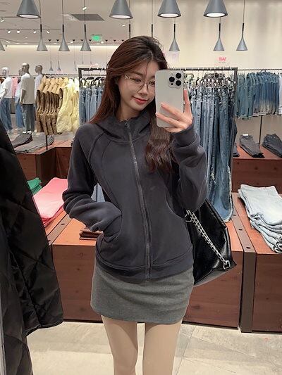2024 秋冬トップスかわいいパーカー裹起毛フード付き韓国風長袖ゆったり細見え白黒おしゃれレトロチャッシルエット甘め大人っぽ韓国フルサイズファッション系ルーズレディースお出かけ学生通学トラック羽織り