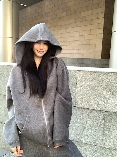 2024秋冬 韓国 かわいい レディース 無地 フード付き長袖アウターレトロセット黑白フーディーブルサイズ丈トップス春カジュアルスポーツファッション系通学学生袖お出かけアップシルエットトラック羽織り
