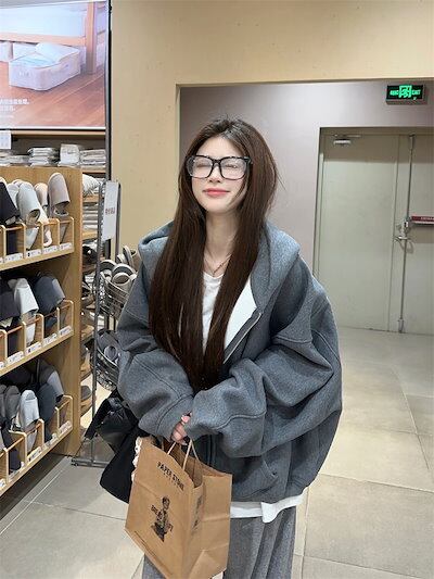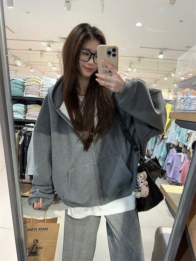 2024 秋冬 韓国 かわいい レディース 無地 フード付き長袖アウターレトロセット黑白フーディーブルサイズ丈トップス春カジュアルスポーツファッション系通学学生袖お出かけアップシルエットトラック羽織り