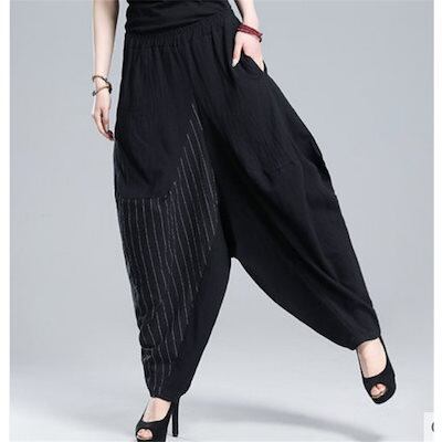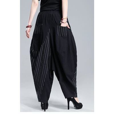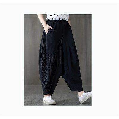 万能流行感バルーンパンツ パンツ ロングパンツ スカンツ ボトムス レディース ズボン ストライプ柄 ハイウエスト ウエストゴム 美脚 ポケット付き 高級感 着痩せ 春30代 50代