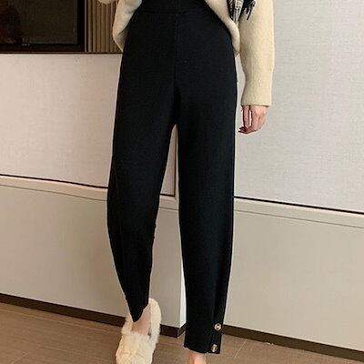 ニットパンツパンツレディースロングパンツボトムスきれいめテーパードパンツ九分丈パンツストレッチテーパードカジュアル楽ちんオフィスウエストゴム脚暖かいカジュアルシルエット203040