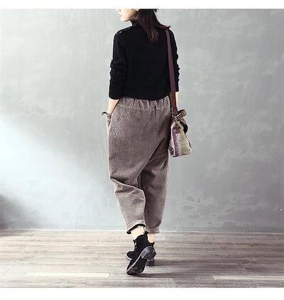パンツ コーデュロイ サルエルパンツ ボトムス テーパードパンツ ズボン レディース 大きいサイズ 無地 秋冬