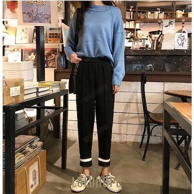 レディース サルエルパンツ 九分丈 パンツ 厚手 ゆったり ウエストゴム ロングパンツ カジュアルパンツ リラックス 春秋 冬 お洒落