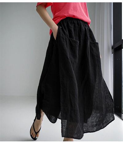 綿麻ワイドパンツ リネン スカート レディース 夏 ガウチョパンツ フレアパンツ スカート見えるパンツ 綿麻風 ウエストゴム バギーパンツ 大きいサイズ ゆったり リラックス ビーチ 海 爽やか ふん