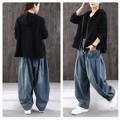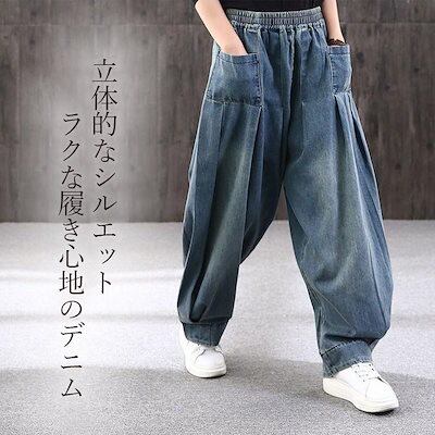 あすつく サーカス デニム パンツ レディース 大きいサイズ ウエストゴム ワイド ジーンズ パンツ 個性的 ゆったり 楽 ルーズ シルエット 4L 3L LL 春 即納