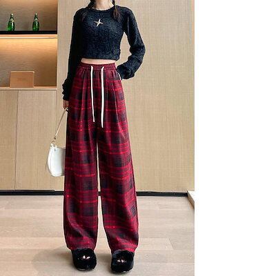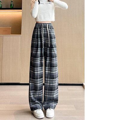 パンツ サルエルパンツ テーパードパンツ ボトムス レディース パンツ ズボン チェック柄 チェック ロング丈 綿混 ハイウエスト ウエスト紐付き 春 秋 冬 裏起毛