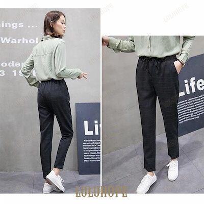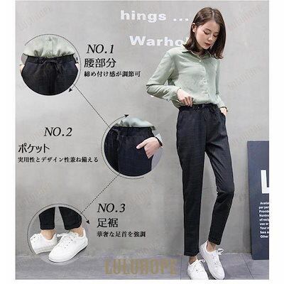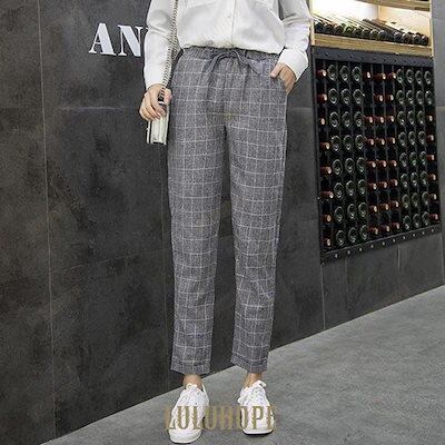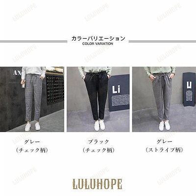 サルエルパンツ レディース テーパードパンツ チェック柄 春 スラックス ストライプ柄 パンツ ウエストゴム 九分丈 薄手 サマーパンツ オフィス