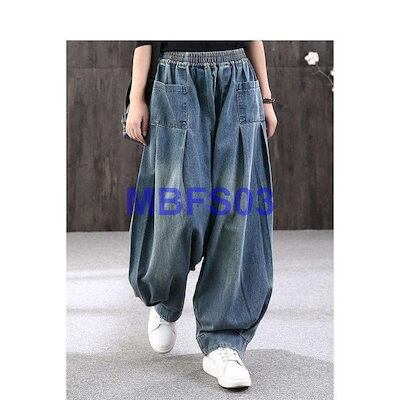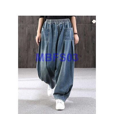 デニムパンツ ロング丈 バルーン サルエルパンツ パンツ レディース デニム バルーンパンツ ウェストゴム ゆったり ハレムパンツ カジュアル 着痩せ