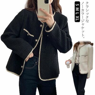 卒園式 ツィードジャケット ノーカラーツイードジャケット ツイード ノーカラーツイードジャケット レディース 卒業式 入学式 パール 裏地付き アウター フォーマル セレモニー スーツジャケット カジ
