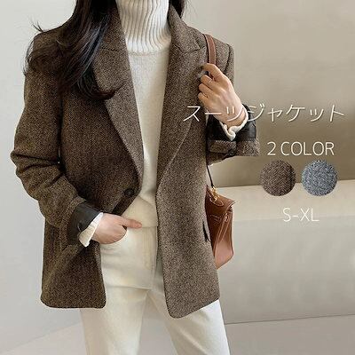 スーツジャケット レディース 秋 冬 ヘリンボーン スーツ コート テーラードジャケット ジャケット ラシャ ロングジャケット 羽織り アウター 長袖 防寒コート 上着 羽織 フォーマル OL風 オフ