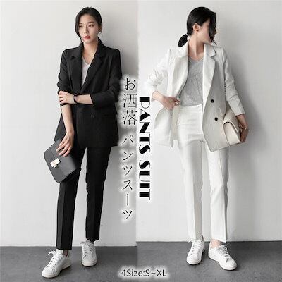 セットアップ 2点セット パンツスーツ レディース スーツ 上下セット フォーマル 黒 パンツ ロングパンツ ジャケット 長袖 通勤 OL 30代 40代 50代 大きいサイズ 着痩せ 春 夏 秋