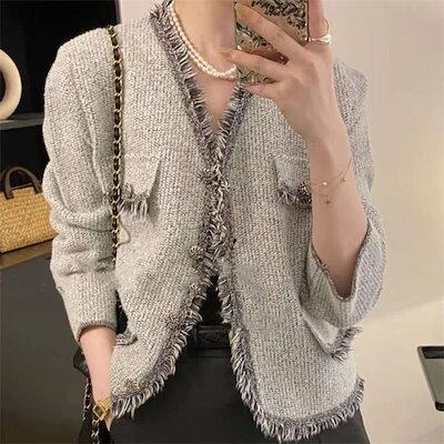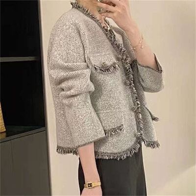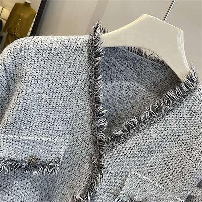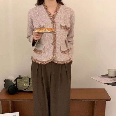 ツイードジャケット アウター レディース Vネック ジャケット ツイード 羽織り 長袖 ノーカラー フォーマル アウター スーツジャケット ノーカラージャケット スーツ 襟なし トレンド 春 秋冬 着