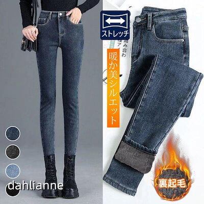 デニムパンツ 裏起毛 レディース スキニーデニム 暖か 防寒 ボトムス ロング ジーンズ ジーパン ストレッチ スリム 着痩せ 美脚