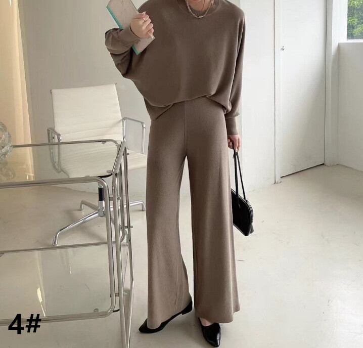 秋冬新作 ファッション ニット 2点セット ハイエンド レトロ風 ニット 厚手 トップス ワイドパンツ