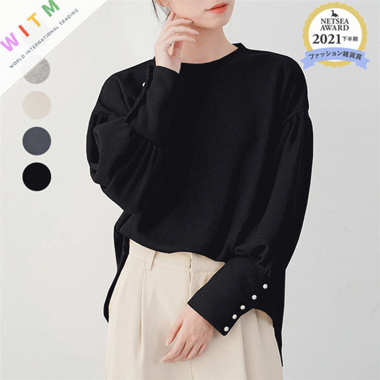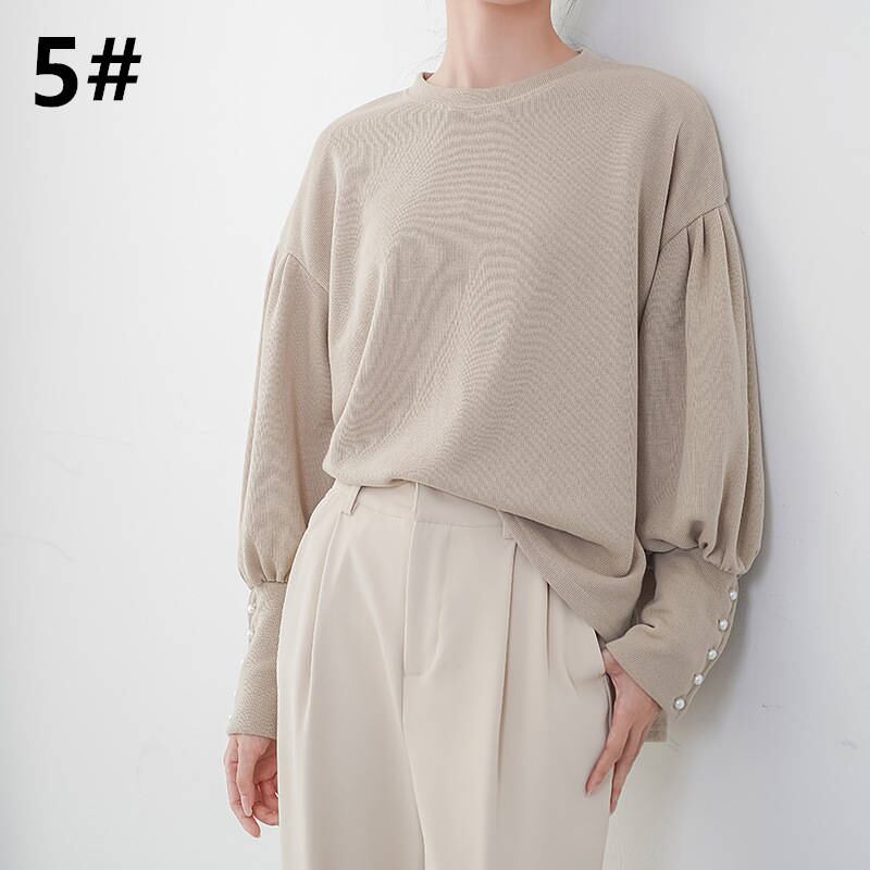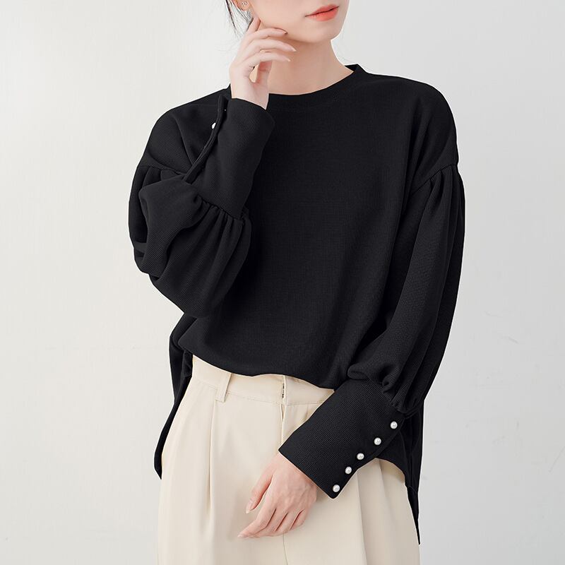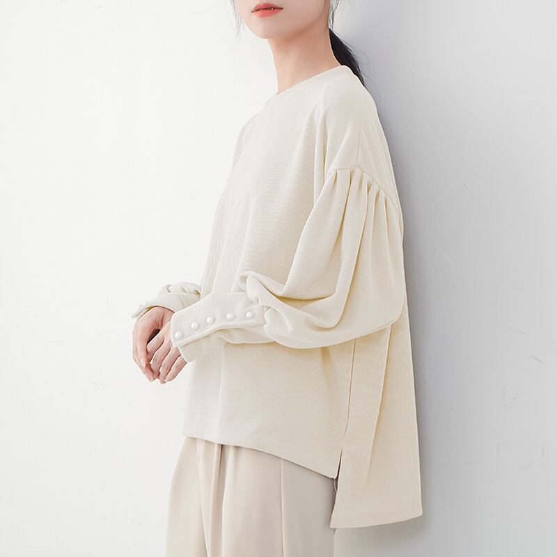 2023秋冬新作 無地 トップス トレーナー 厚手 真珠 ラウンドネック 防寒対策 上品
