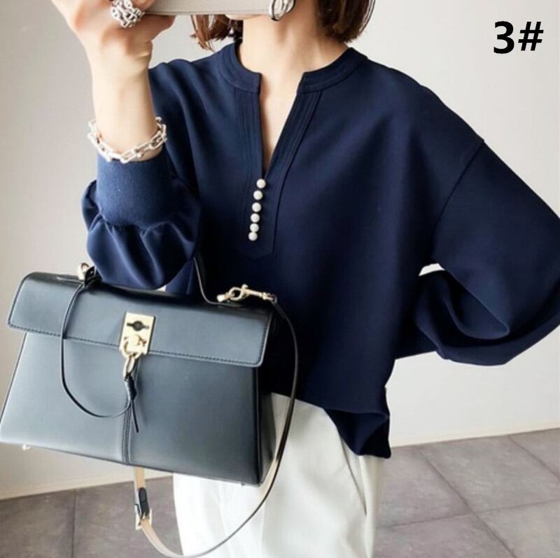ins大人気 トップス レディース プルオーバー Vネック 2024年秋冬新作 長袖 3色